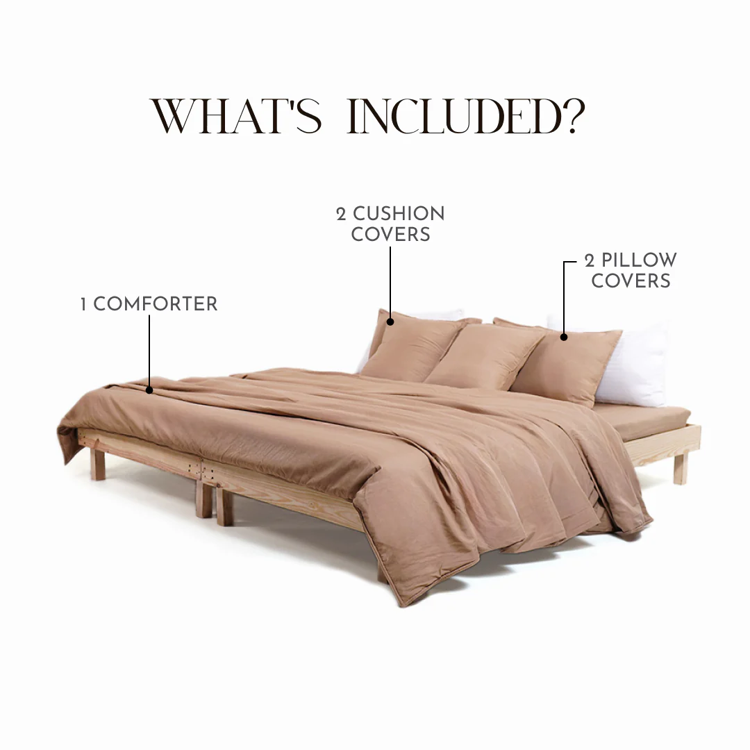 Zarf California King Size AC Comforters With 2 Pillow Cases & 2 Cushion Covers - Honey