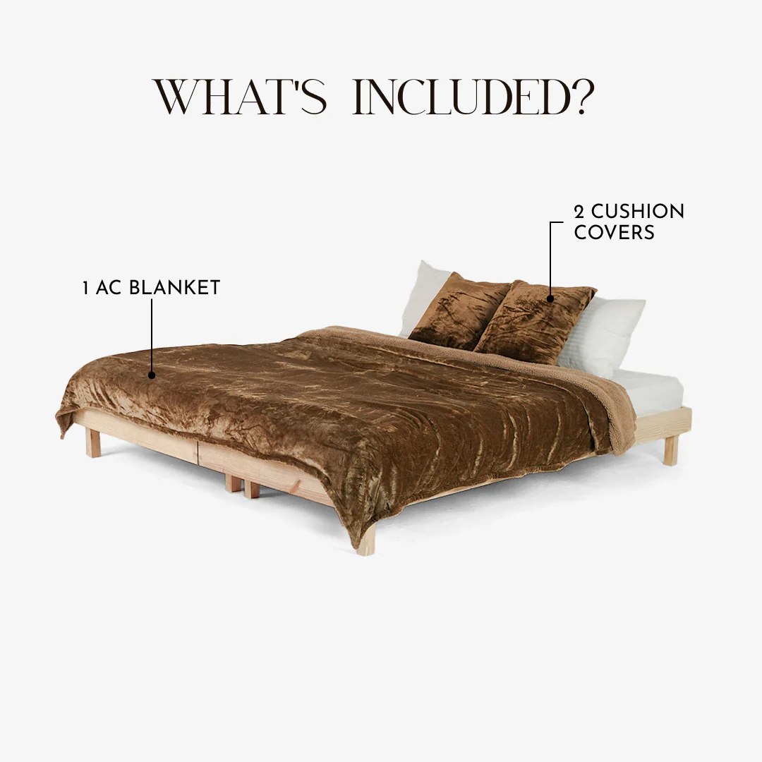 Zarf California King Size Reversible AC Blanket Cover With 2 Cushion Covers - Rustic Cocoa—
